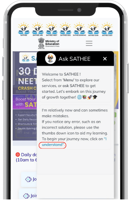 Click on the "I Understand" link to ask your query from the BOT