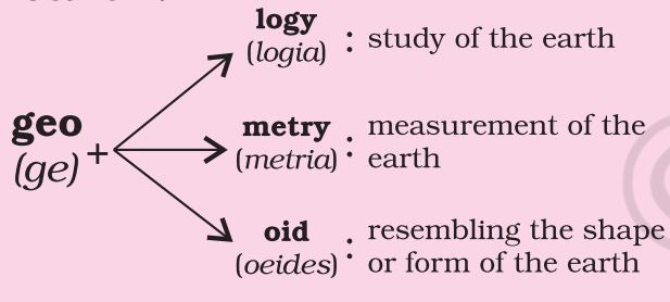 Word Origin Many words used in a language may have been taken from some other language. Geography, for example, is an English word. It has its origin in Greek, which relates to the description of the earth. It is made of two Greek words, ‘ge’ meaning’ ’earth’ and ‘graphia’ meaning ‘writing’. Find out more about the earth.