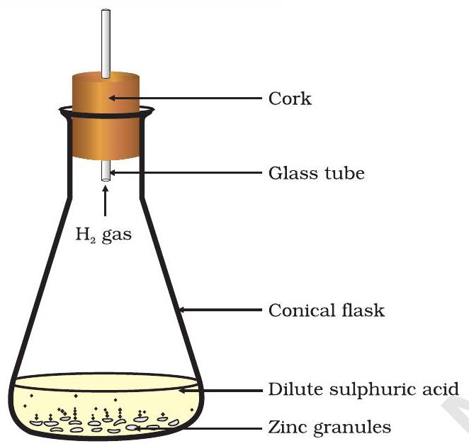 Figure 1.2 Formation of hydrogen gas by the action of dilute sulphuric acid on zinc