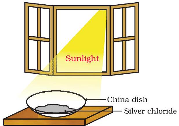 Figure 1.7 Silver chloride turns grey in sunlight to form silver metal light.