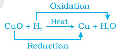 During this reaction (1.29), the copper(II) oxide is losing oxygen and is being reduced. The hydrogen is gaining oxygen and is being oxidised. In other words, one reactant gets oxidised while the other gets reduced during a reaction. Such reactions are called oxidation-reduction reactions or redox reactions.