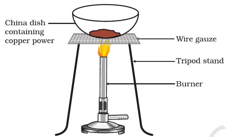 - Heat a china dish containing about $1 g$ copper powder (Fig. 1.10).