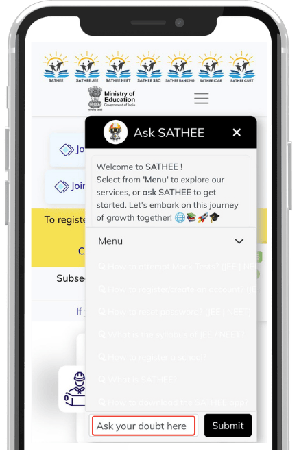 To ask your doubt, click on the CHATBOT