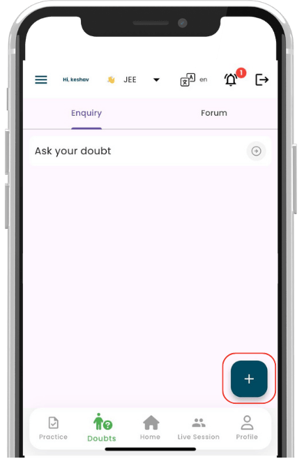 To ask your doubt, click on the PLUS button